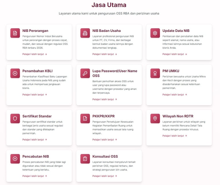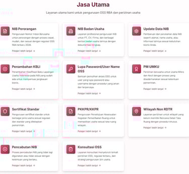 Kami membantu proses pengurusan NIB di OSS RBA dengan cepat dan mudah, didukung tim responsif dan layanan profesional.